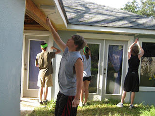 We finished one project today, and the picture of the lady whose house we painted is above. We look lovely and covered in paint:) We finished a little early, so we decided to go to the Gulf of Mexico beach today and grill out. It was awesome! We found an alligator and took a picture with it.